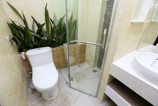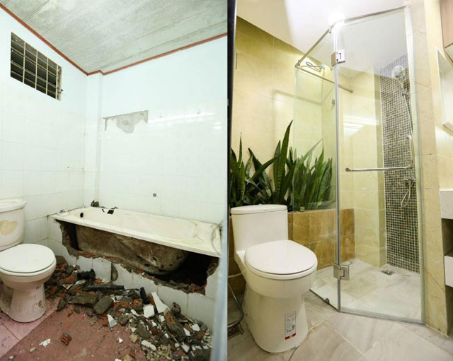 Sau khoảng 10 ngày thi công, phòng tắm của gia đình anh Tài đã thay đổi hoàn toàn. Chiếc bồn tắm nằm được thay thế bằng phòng tắm đứng để tiết kiệm diện tích và tránh nước bắn ra nền, đồng thời đưa thêm mảng xanh vào để tạo cảm giác rộng rãi, thoáng đãng hơn.