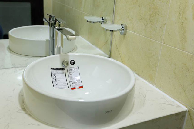 Dĩ nhiên, phòng tắm mới của gia đình anh Tài cũng được trang bị thêm một chiếc bồn rửa. Chiếc bồn có thiết kế đơn giản nhưng tiện lợi này không gây ảnh hưởng đến không gian hạn chế của phòng tắm.