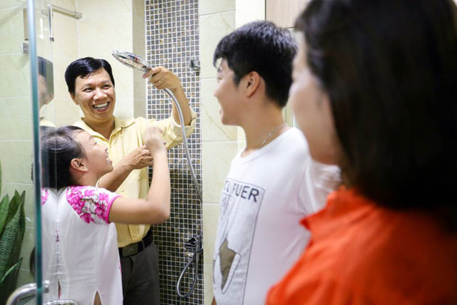 Những hình ảnh về căn phòng tắm mới, sau khi được cải tạo đã giống đến 99% bản thiết kế khiến anh Tài rất hài lòng. Trong giây phút hạnh phúc của gia đình khi trải nghiệm phòng tắm mới, anh Tài cho biết: “Phòng tắm thực tế này còn đẹp hơn cả phòng tắm trong mơ của chúng tôi, cám ơn nhãn hàng COTTO rất nhiều!”