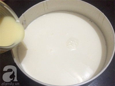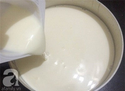 ![]() Tiếp tục đổ hộp sữa chua cái vào nồi khuấy đều. |