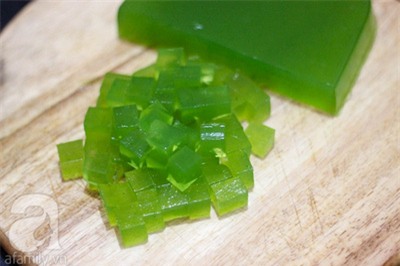 ![]() | ![]() Khi rau câu đông lại, đổ rau câu ra thớt cắt thành từng miếng nhỏ vừa ăn. |