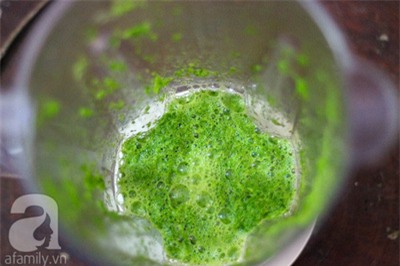 ![]() | ![]() Lá dứa rửa sạch, cắt nhỏ, cho vào máy xay sinh tố cùng 200ml nước lọc xay nhuyễn. |