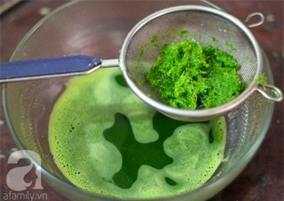 ![]() Dùng rây lọc bỏ bã giữ lại 200ml nước cốt lá dứa. |