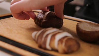 ![]() | ![]() Nấm hương rửa sạch sau đó cắt thành miếng dày khoảng 0,5cm. Thái sợi gừng và hành lá (phần cọng trắng). |