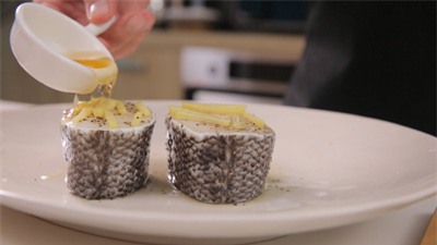 ![]() | ![]() Cho cá ra đĩa ướp cùng với hạt tiêu, muối, gừng và rượu gạo trong 15 phút. |