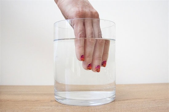 Giữ tay dưới vòi nước lạnh đang chảy hoặc nhúng vào bát nước đá sẽ giúp làm sơn móng nhanh khô hơn