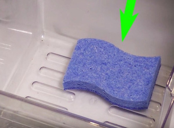 Những vấn đề này sẽ được giải quyết bằng miếng bọt biển rửa chén. Đầu tiên, bạn mang hết rau củ quả ra khỏi ngăn riêng trong tủ lạnh, sau đó đặt hai miếng bọt biển ở dưới đáy ngăn.