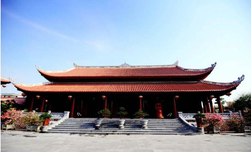 Nóc chạm trổ tinh tế hình rồng bay phượng múa. Bất kỳ một xà ngang, hay bậc cửa đều có các họa tiết, từ "long, ly, quy, phụng" hoặc "tùng, cúc, trúc, mai" hay đủ loại chim thú, hoa lá cỏ cây.