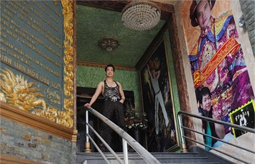 Vào bên trong, phòng khách của Ngọc Sơn có một chiếc ghế trạm trỗ cầu kỹ đặt ở trung tâm. Bên phải đặt tượng Quan Công, bên trái là Đạt Ma sư tổ. Chỗ ngồi yêu thích của Ngọc Sơn khiến anh trông không khác... một ông hoàng.