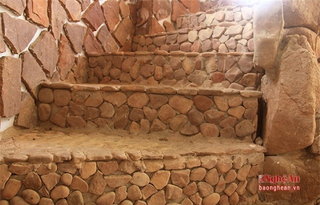 được ốp bằng sỏi. Chủ ngôi nhà là ông Ngô Xuân Vỹ (57 tuổi) và vợ là bà