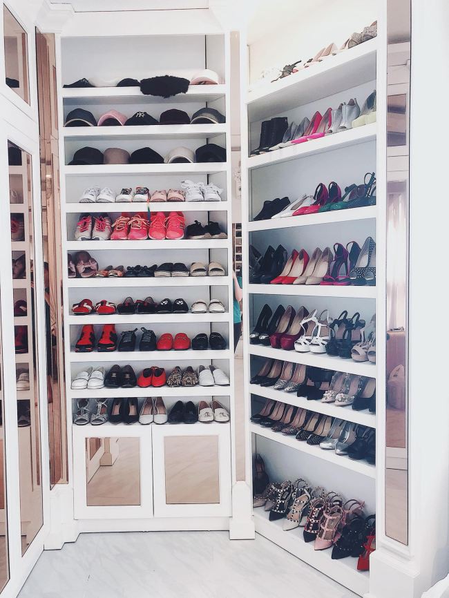 Phòng riêng của ca sĩ Bảo Thy có những chiếc tủ lớn đựng giày, túi xách hàng hiệu. Ảnh: Thegioitre.