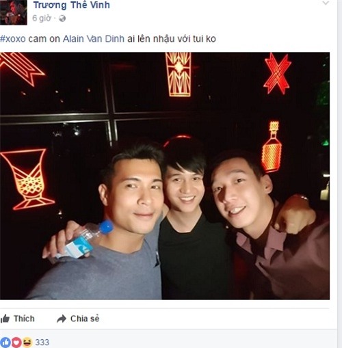 Trái ngược với sự bàn tán sôi nổi từ cộng đồng mạng về đám cưới của nữ cơ trưởng 8x, trên trang facebook cá nhân Trương Thế Vinh liên tục đăng tải những dòng trạng thái có phần khó hiểu và tỏ ra khá kiệm lời không đề cập đến bất cứ điều gì liên quan đến tình cũ. Giọng ca “Tình yêu hoa gió” chia sẻ riêng một dòng cảm xúc ngắn ngủi chỉ một từ: “À” và sau đó không lâu anh cập nhật lời ngỏ muốn có người cùng nhậu với mình.