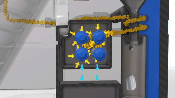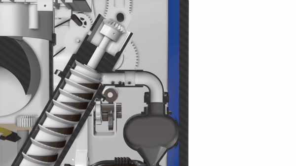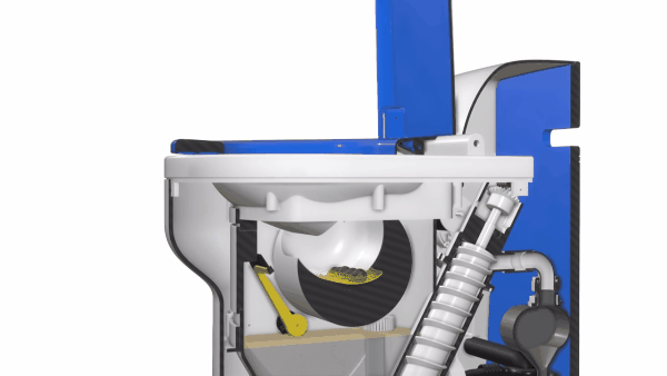 Phần chất thải rắn được một hệ thống chạy điện đưa sang một buồng chứa riêng. Tại đó nó sẽ được trộn với một loại sáp khử mùi và để khô.