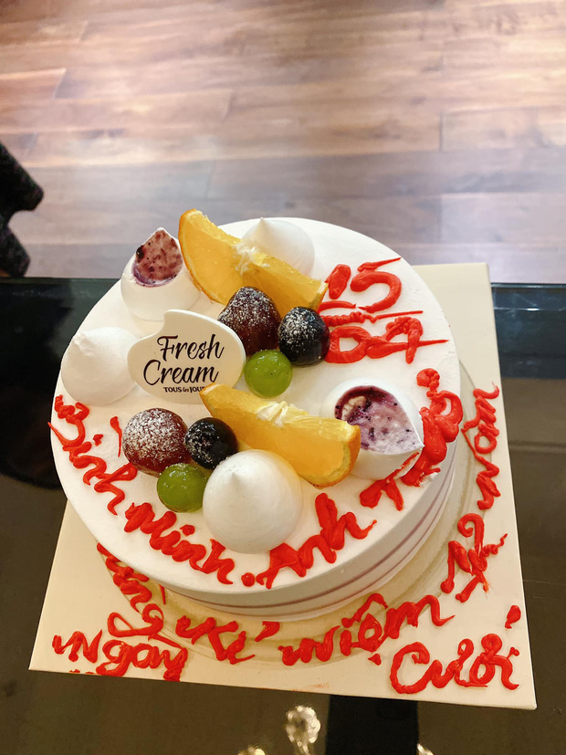 Chiếc bánh kem được làm riêng cho vợ chồng Bình Minh trong ngày vui.