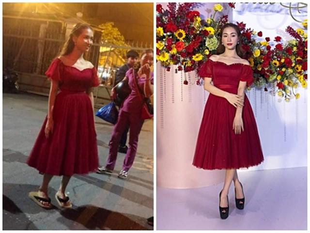 Ngọc Thảo thản nhiên dạo phố với bạn bè cùng dép bệt nhưng khi xuất hiện trước công chúng thì cô diện giầy cao gót đồng điệu với trang phục.