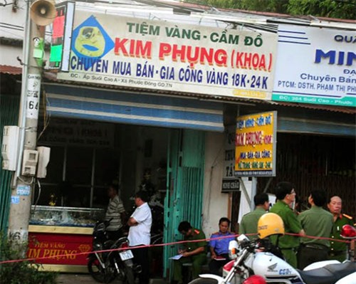 Vào thời điểm trên, lợi dụng lúc đường vắng người qua lại, 4 đối tượng đeo khẩu trang bịt kín mặt đi trên 2 xe gắn máy đã nổ súng cướp vàng ở tiệm vàng Kim Phụng. Người dân chứng kiến vụ việc cho biết, khi 2 xe máy dừng lại trước tiệm vàng Kim Phụng thì 2 đối tượng ngồi sau xông vào tiệm vàng và nổ súng bắn vỡ tủ kính cướp đi nhiều vàng.