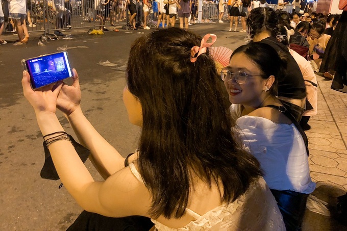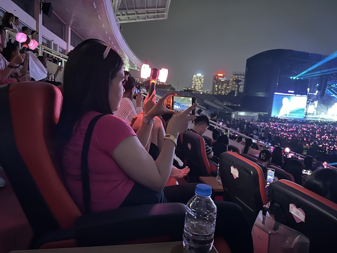 Fan ngồi ở các vị trí xa chỉ được nghe nhạc và ngắm nhìn thần tượng qua màn hình led. Dù vậy họ cũng cố gắng ghi lại các thước phim làm kỷ niệm.