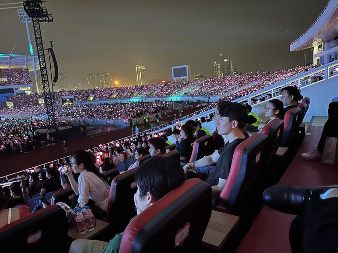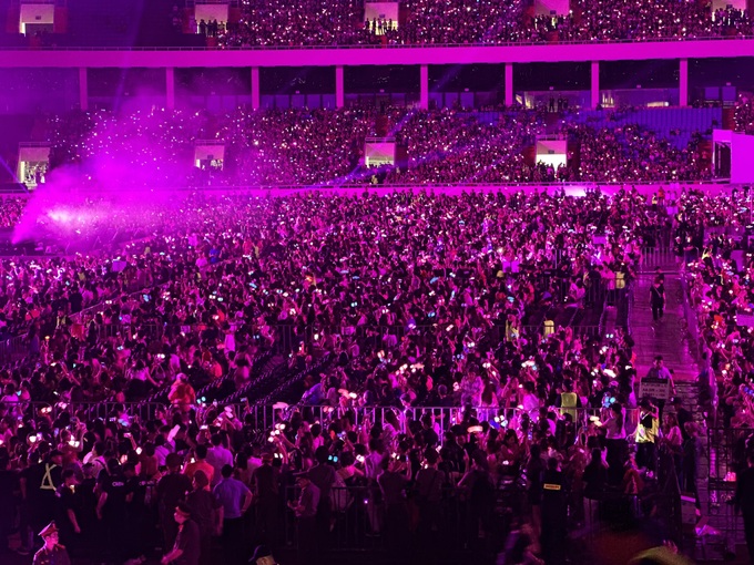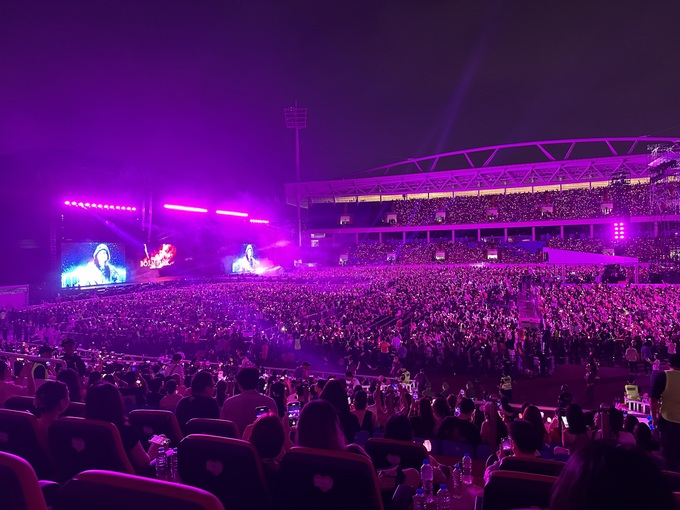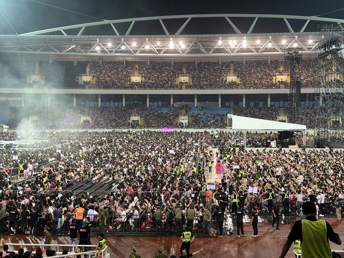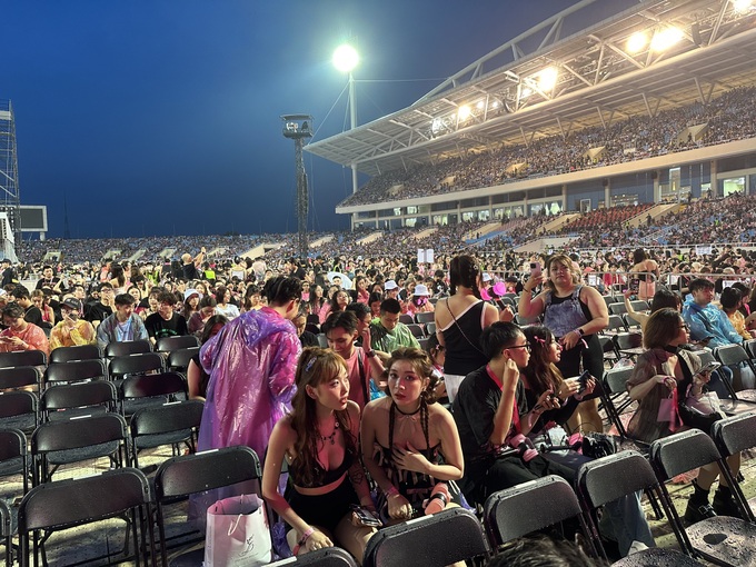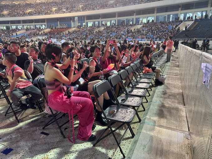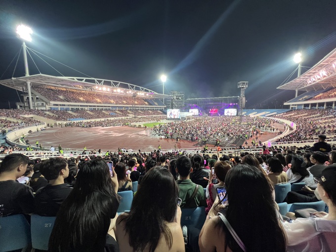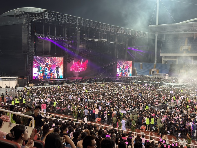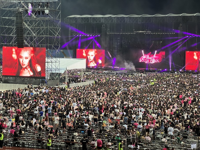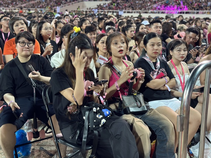 Hàng chục nghìn khán giả đã đổ về sân vận động. Họ tranh thủ chụp ảnh, cùng hò reo, đồng thanh hát khi nhạc Blackpink vang lên.