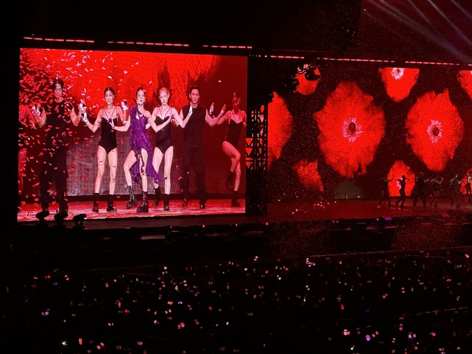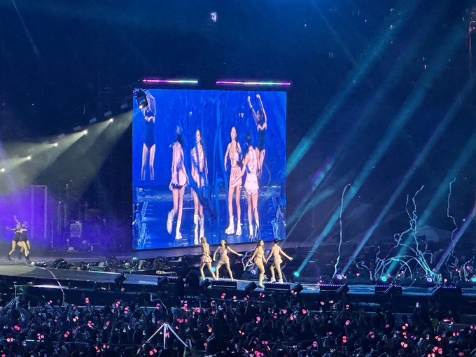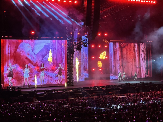Nhóm hát ca khúc “How you like that” mở đầu show Born Pink tại Hà Nội. 4 thành viên diện trang phục hồng lấp lánh, khoe vũ đạo và giọng hát lôi cuốn.