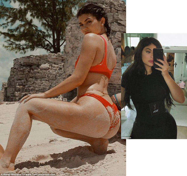 Kylie Jenner nổi tiếng sở hữu thân hình đồng hồ cát bốc lửa. Sau khi sinh, dáng vóc của cô không thay đổi nhiều một phần do sinh nở ở độ tuổi rất trẻ - 20 tuổi, da dẻ đàn hồi tốt.