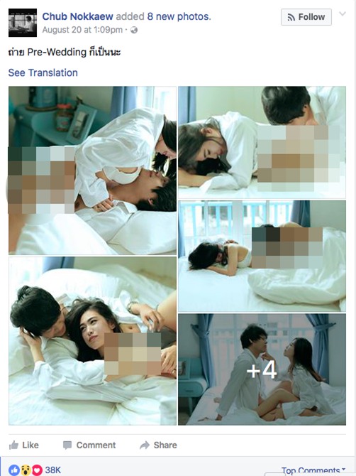 Đăng tải cách đây không lâu, thế nhưng bộ ảnh cưới của cặp đôi Thái Lan này đã nhận tới 38 nghìn lượt like bởi phong cách chụp khá khác người. Không váy vóc như công chúa, không vest điển trai mà đơn giản chỉ là những hình ảnh giường chiếu, ân ái.