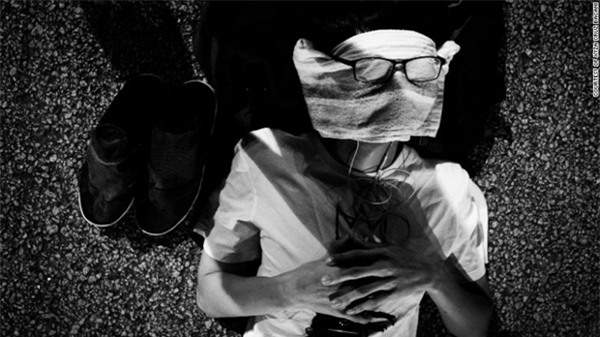 Bacani chụp một người biểu tình ở Hồng Kông đang ngủ trên mặt đường nhựa