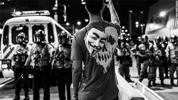 Một người biểu tình Hồng Kông chụp ảnh cảnh sát bằng điện thoại của anh ta.