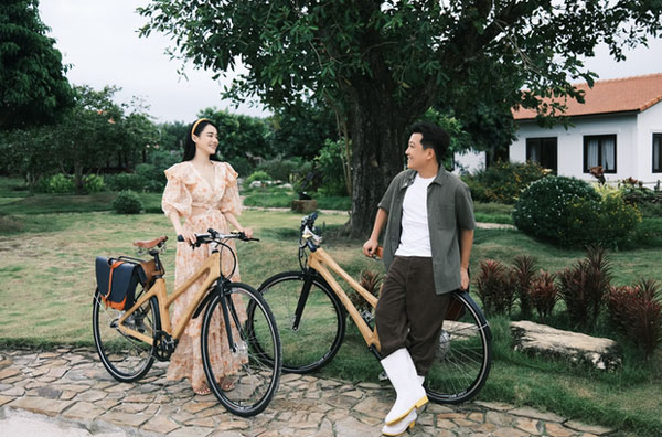 Bộ ảnh được chụp tại dãy nhà được đặt tên theo con gái của 2 vợ chồng - Destiny. Nhã Phương và Trường Giang cùng nhau đạp xe, thể hiện những cử chỉ tình cảm trong không gian khá lãng mạn.