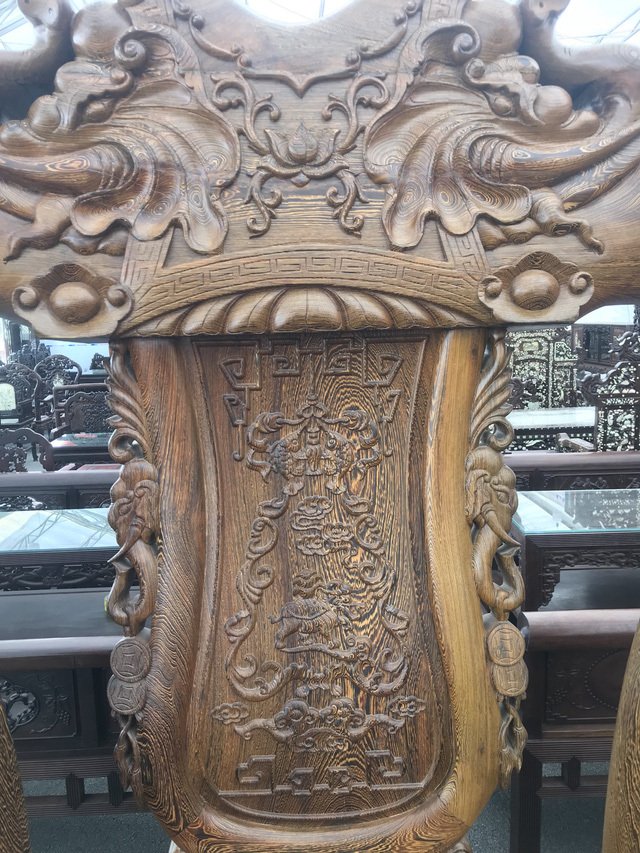 Để thấy được độ khủng của nó, anh Tới so sánh: “Các bộ bàn ghế thông thường có tay 14 hoặc 16 kê trong nhà đã khá to. Kích thước tay của bộ này còn gấp đôi những bộ đó. Mà khi tay ghế to thì các chi tiết trên ghế cũng phải làm tương xứng.”