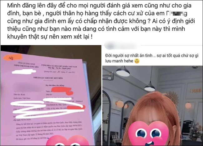 Đi kèm chính là bằng chứng hai bên đã đăng ký kết hôn. Cô gái tên P. sinh năm 2002 đồng ý kết hôn với người đàn ông Hàn Quốc sinh năm 1979. Ngoài ra, còn có một loạt những ảnh chụp màn hình khoản tiền chuyển về từ Hàn Quốc cho P. để học tiếng và lo toan cuộc sống.