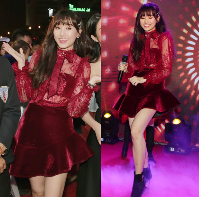 Trước đó, Hari Won từng được khen ngợi hết lời khi mặc khoe áo chip tinh tế, chẳng sợ hớ hênh dưới ánh đèn flash.