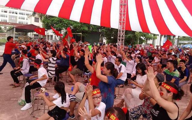 Hàng nghìn bạn trẻ có mặt tại sân Trung tâm Hỗ trợ thanh niên công nhân và lao động trẻ (Tỉnh đoàn Hải Dương) cổ vũ khi có đội tuyển Việt Nam thi đấu. Ảnh: T.A