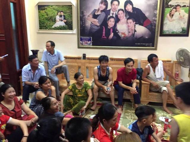 Nhiều người thân, họ hàng, bạn bè đến trật nhà ông Tạo cổ vũ cho đội tuyển Việt Nam và Văn Toàn. Ảnh: V.T