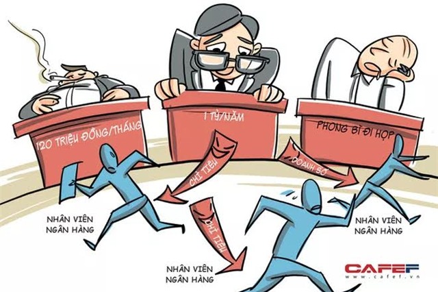 Cũng theo anh, nỗi lo khủng khiếp của nhân viên ngân hàng chính là áp lực về chỉ tiêu, doanh số: “Ví dụ chỉ tiêu năm 2015, doanh số cho vay chỉ 100 tỉ nhưng sang 2016 là tăng lên gấp 3 lần, lương không tăng nhưng chỉ tiêu tăng. Ngân hàng trả lương theo mức độ hoàn thành chỉ tiêu kinh doanh nên nếu ai không đáp ứng được thì lương không đảm bảo”.