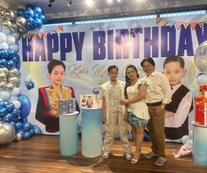 Mới đây, bố chồng Khánh Thi đăng tải loạt ảnh trong bữa tiệc sinh nhật cháu nội Kubi. Kèm theo loạt ảnh, ông chia sẻ: “Tiệc mừng sinh nhật cháu nội Kubi lên 2 con số (10 tuổi)”.