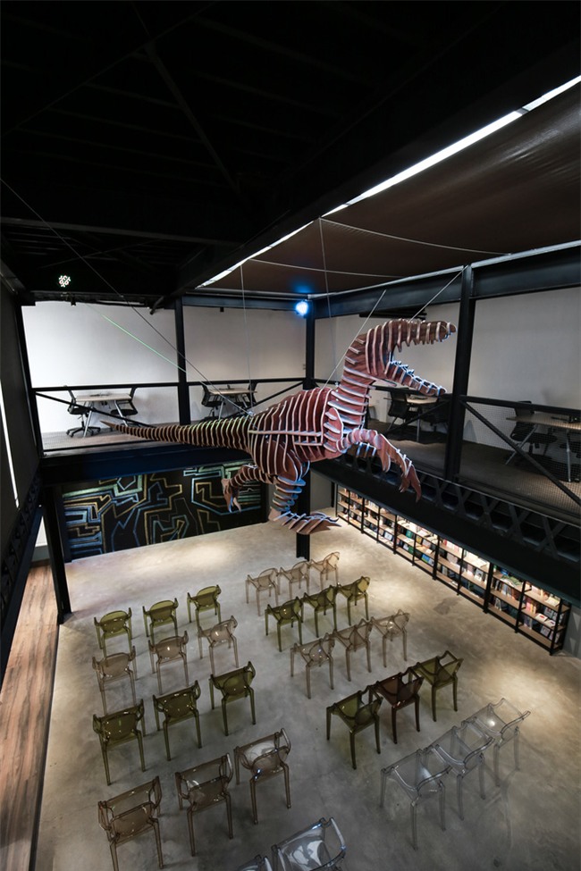 Và mình được nhận lời mời tạo ra một điểm nhấn không gian ấn tượng trong dự án mới "Up lab". Mình đã tạo ta chú khủng long bằng gỗ tỉ lệ 1:1 kích thước dài 7m (theo mình tìm hiểu thì lớn nhất thế giới) và đây chính là dự án mà mình tâm đắc, tự hào nhất", Kiên tự hào.