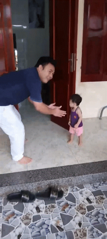 Bố dang tay bế nhưng em bé nhất định không theo