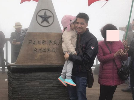 Anh Hổ và con gái đã leo lên được đỉnh Phan Xi Păng. Ảnh NVCC