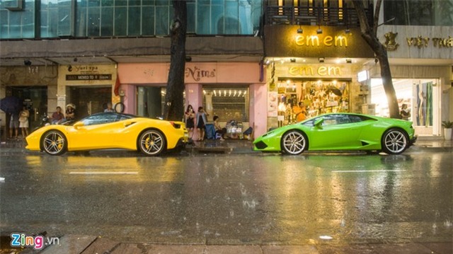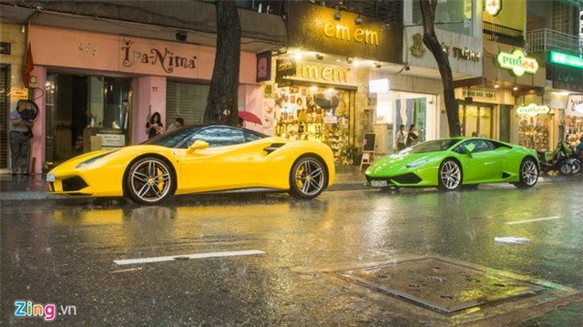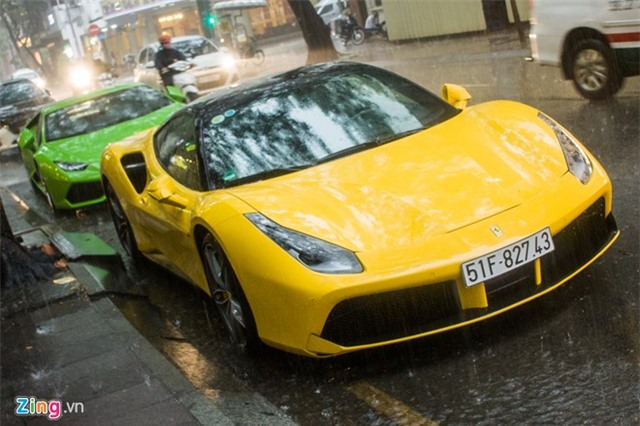 | Đỗ phía trước là chiếc Ferrari 488 GTB màu vàng có trị giá khoảng 14 tỷ đồng của Phan Hoàng trong khi đỗ phía sau là chiếc Lamborghini Huracan màu xanh cốm của Phan Thành. Đây là món quà tốt nghiệp mà Phan Thành dành tặng cho em trai của mình. Ferrari 488 GTB có thiết kế đẹp hơn, động cơ mạnh mẽ hơn so với đàn anh 458 Italia. Xe được trang bị khối động cơ V8 dung tích 3,9 lít, tăng áp kép, đúc hoàn toàn bằng nhôm. |