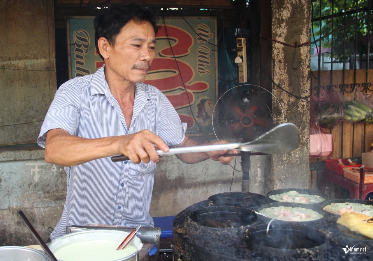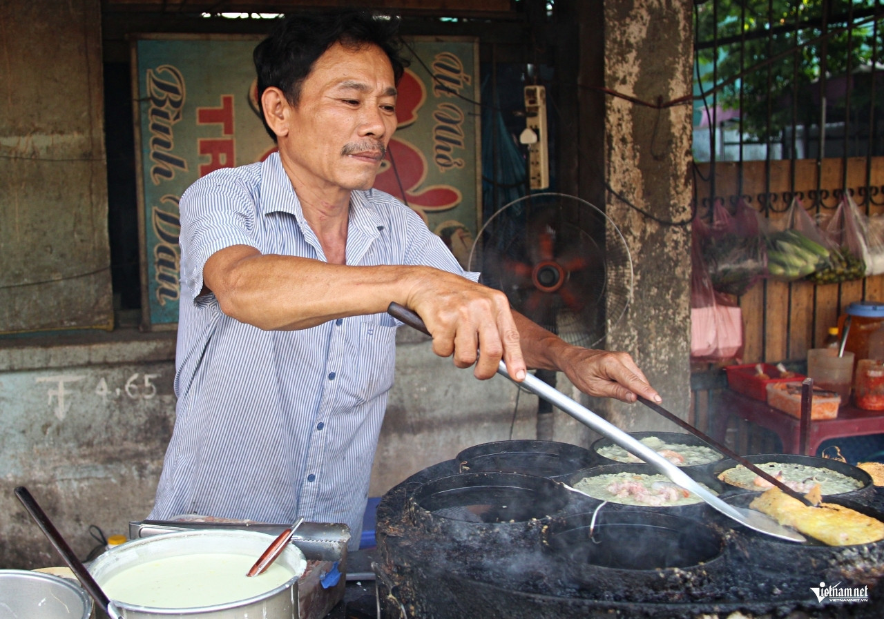 16h, khách lạ ghé quán bánh xèo miền Trung của 3 cha con ông Huỳnh Dần (52 tuổi) nằm trên vỉa hè đường Trịnh Thị Miếng (xã Đông Thạnh, TPHCM). Trong lúc chờ bánh, khách gọi lon nước ngọt giải khát.