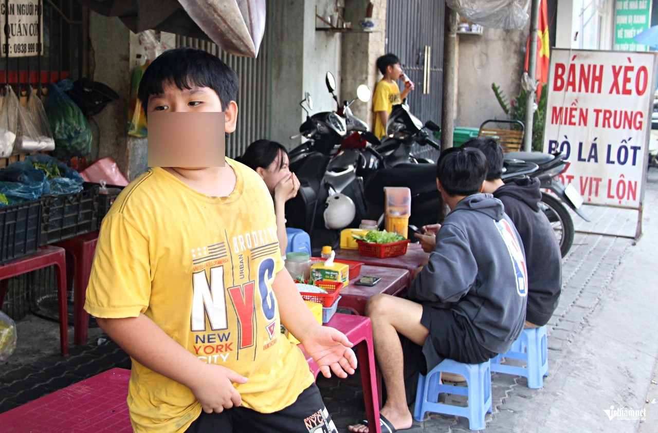 Ông Dần vừa trông 2 con vừa bán bánh xèo từ 14-22h. Khi hết khách, ông nhờ người quen đến chở 2 cậu con trai về trước, để các con đi ngủ. Ông ở lại dọn dẹp nơi bán, trả lại nguyên trạng mặt bằng để sáng người khác bán cơm.