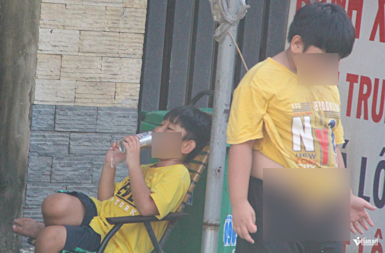 Thấy khách bật nắp lon nước, cậu bé 10 tuổi đang ngồi phía xa nhổm dậy, cầm theo chiếc ghế nhựa tiến lại gần khách. Lúc khách không để ý, bé nhanh tay cầm lon nước rồi ù té chạy về vị trí cũ, ngồi uống một cách ngon lành.