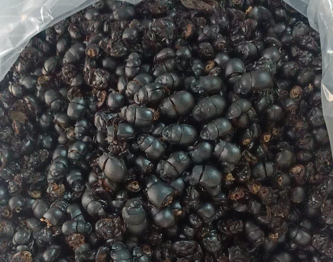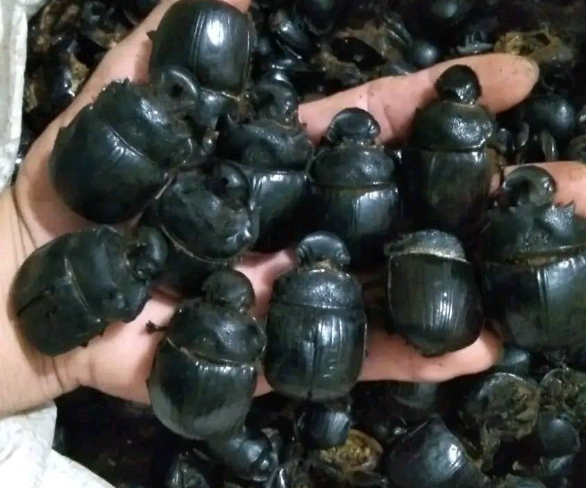 Những con bọ hung có kích thước to hơn đầu ngón tay và đã phơi khô mới được thu mua.
