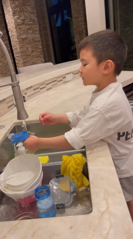 Con trai Đan Trường giúp mẹ rửa bát cực chuyên nghiệp