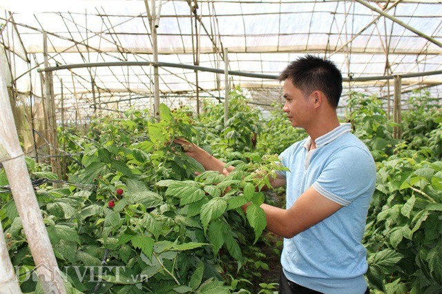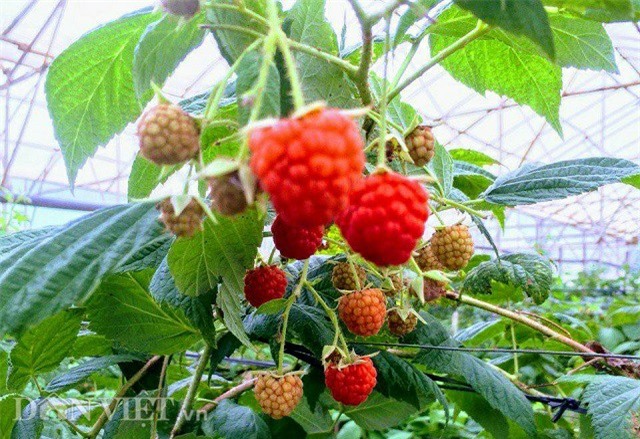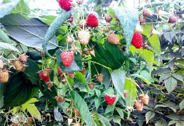 Những quả phúc bồn tử chín mọng đỏ, anh Nguyễn Văn Lưỡng cho biết, các nhà dinh dưỡng cho quả phúc bồn tử loại "siêu thực phẩm" thời hiện đại.