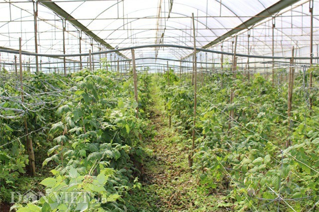 Anh Lưỡng phải làm giàn treo bằng thép để đỡ những cây phúc bồn tử, bởi đây là loại cây thân leo rất mềm.