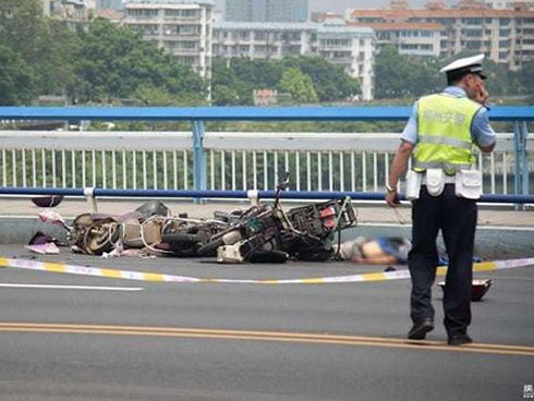 Điều đáng ngạc nhiên là sau va chạm, khi không còn ai cầm lái do cặp đôi đã văng xuống đường thì chiếc xe của cặp vợ chồng vẫn chạy với tốc độ cũ và con của họ vẫn ngồi trên bình nhiên liệu. Đi được khoảng 100m, chiếc xe đâm vào dải phân cách và cậu bé văng vào bụi cây. Trước cú va chạm này, xe máy không người lái suýt đâm vào xe tải.