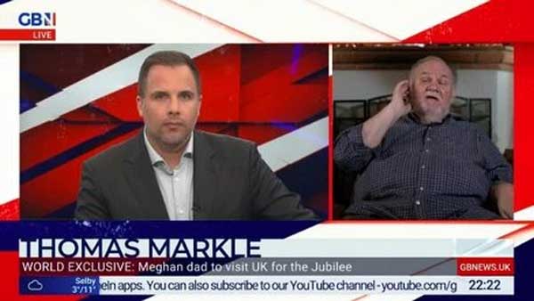 Vào ngày 25/4, ông Thomas Markle đã tiếp nối ông Donald Trump để xuất hiện trên truyền thông, gửi lời nhắn nhủ sâu cay đến con gái mình. Trả lời phỏng vấn với Dan Wotton trên kênh GB News, ông Thomas cho hay: "Tôi sẽ bay tới Vương quốc Anh để dự Đại lễ Bạch kim của Nữ hoàng Anh. Tôi rất mong chờ điều đó. Tôi muốn thể hiện sự tôn trọng của mình cũng như gia đình tôi đối với Nữ hoàng Anh.