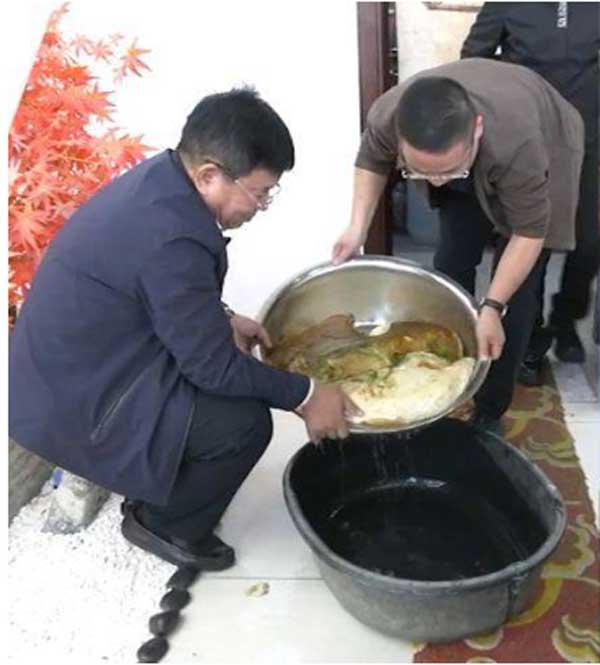 Vài ngày sau, một người bạn họ Trương của ngư dân tới chơi và được anh kể về "tảng thịt" này. Anh Trương cũng cảm thấy băn khoăn về nguồn gốc xuất xứ của nó. Theo anh Trương, "tảng thịt" có thể là một thứ quý hiếm. Hai người bàn bạc một hồi và anh Trương đã cắt một chút "thịt" đem đến Viện Thủy Hải sản Giang Tô để nhờ các chuyên gia kiểm định.