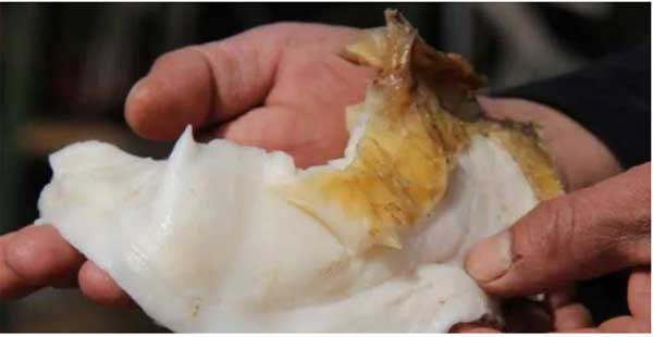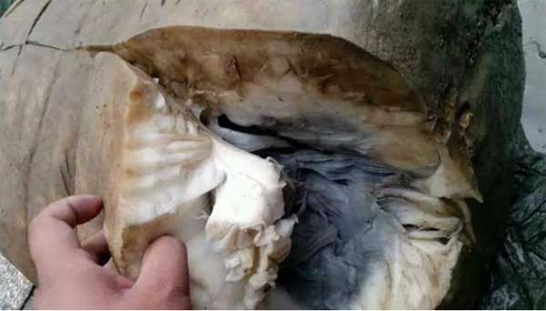 Vào tháng 4 năm 2022, một ngư dân ở Nam Thông, Giang Tô, Trung Quốc đã "vớt" được một vật lạ dưới nước. Vật đó trông giống một tảng thịt lớn, khi chạm vào bề mặt thấy mềm và trơn. Phía trên "tảng thịt" có màu nâu, bên dưới có màu trắng nhạt. "Tảng thịt" này nặng tới 25 kg.